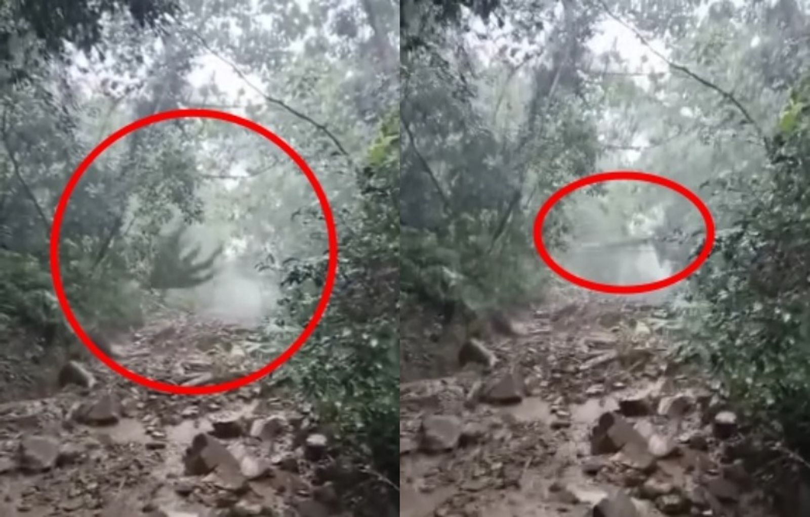 「爆料公社」分享的這段影片,拍攝地點為阿里山鄉新美村,一名民眾正在協助道路搶修時,親眼目睹山壁瞬間崩塌的驚悚一刻。影片中清楚可見,遠處一排排樹木被連根拔起、接連倒塌,泥沙、石頭夾雜著木頭狂洩而下,宛如泥流巨獸撲來,讓不少網友驚呼:「快逃啊,太可怕了!」