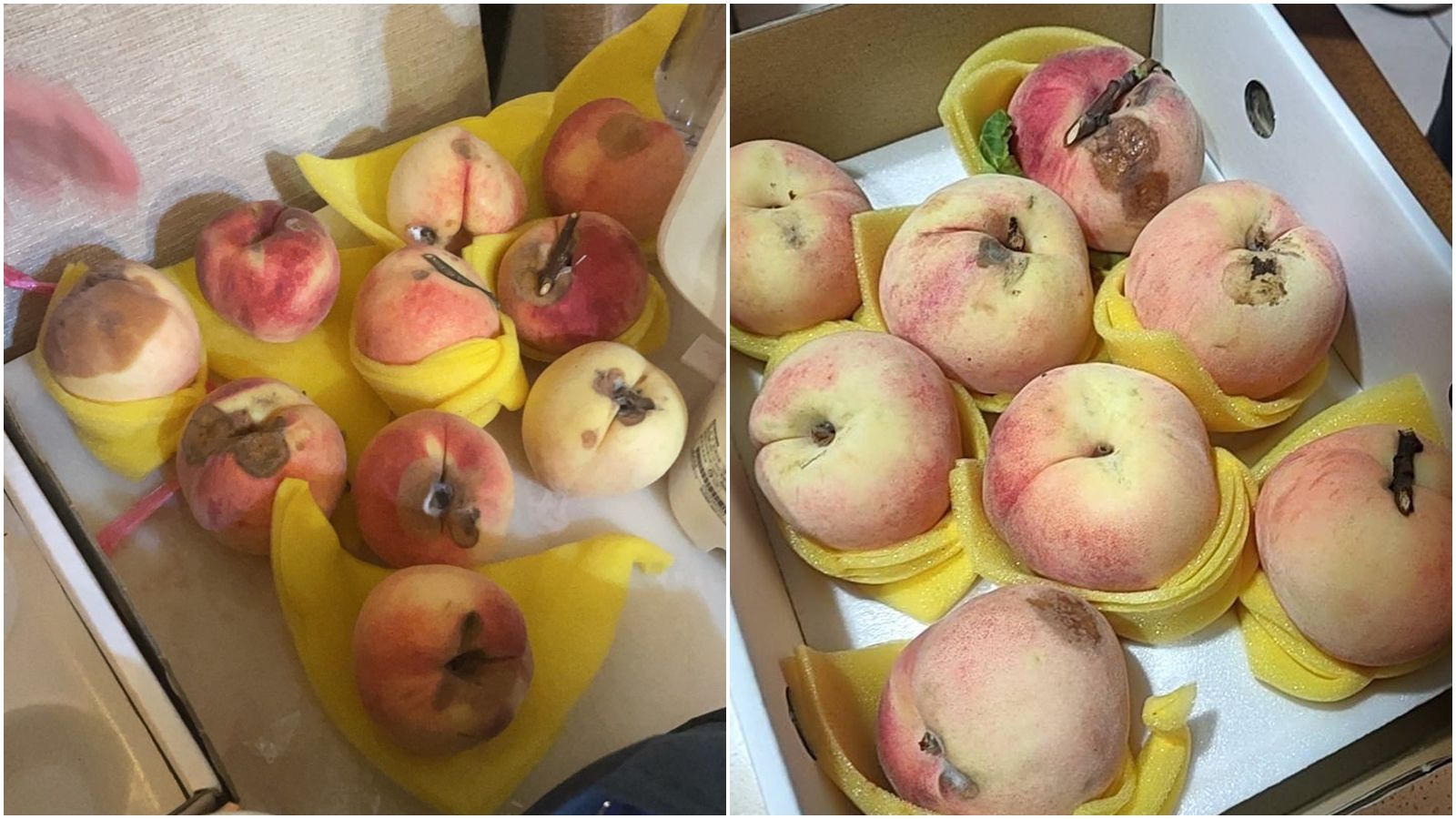 該篇貼文釣出不少遇到類似情形的苦主,「買多盒一定要自己檢查,之前有買過表面很漂亮,背面爛的」「我也遇過,沒看到的那一邊都是爛的」「之前去復興鄉買水蜜桃,也是這樣的情況…當時原本想拿起來看幾顆,老闆一直說不要碰,我會幫你看好的!然後在你面前拿起來看,裝禮盒…拿回家才發現基本都是壞的…真的只有2、3顆是好的,學教訓…以後不敢相信人」。