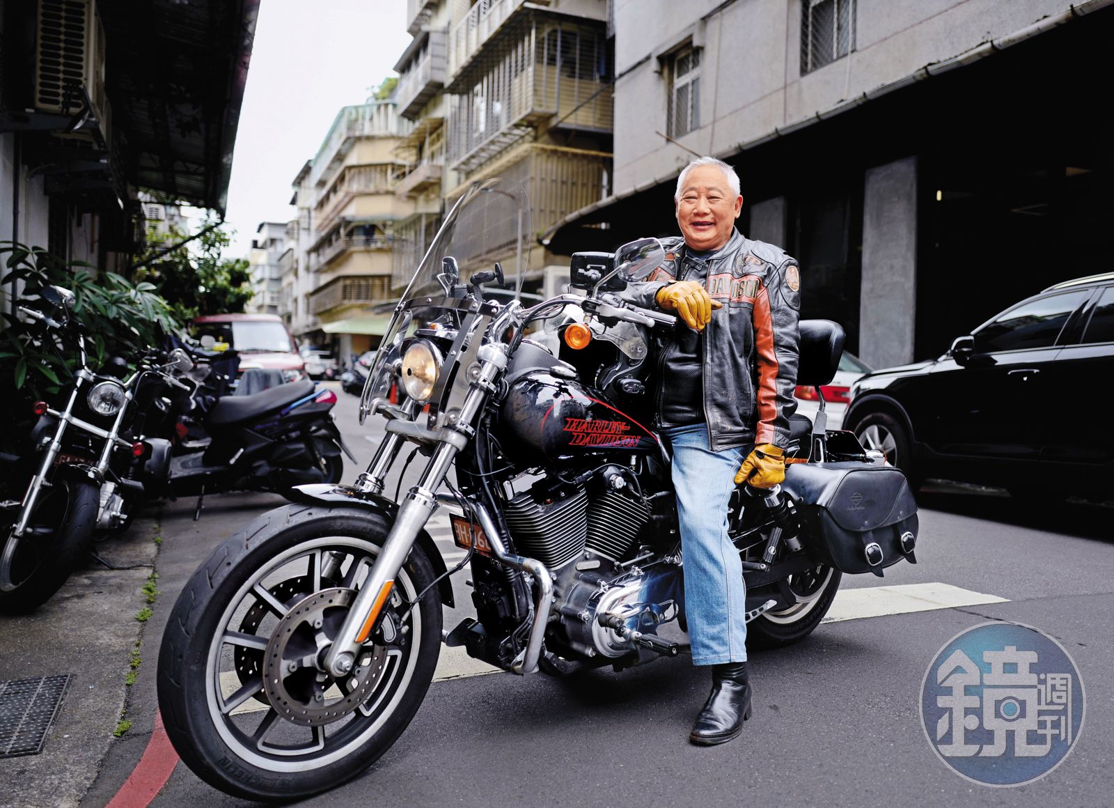 一退休,我就去考大型機車駕照,退休金都投資在裝備,擁有過3台哈雷,家裡十幾套皮衣,外出騎車都穿皮鞋。我常環島,有時單日就騎1千公里,目前累積旅程約30萬公里。我加入老鷹車隊,是全台最年長的老鷹車隊會員。78歲那年,我騎車出車禍,右髖關節打鋼釘,半年後繼續上路。