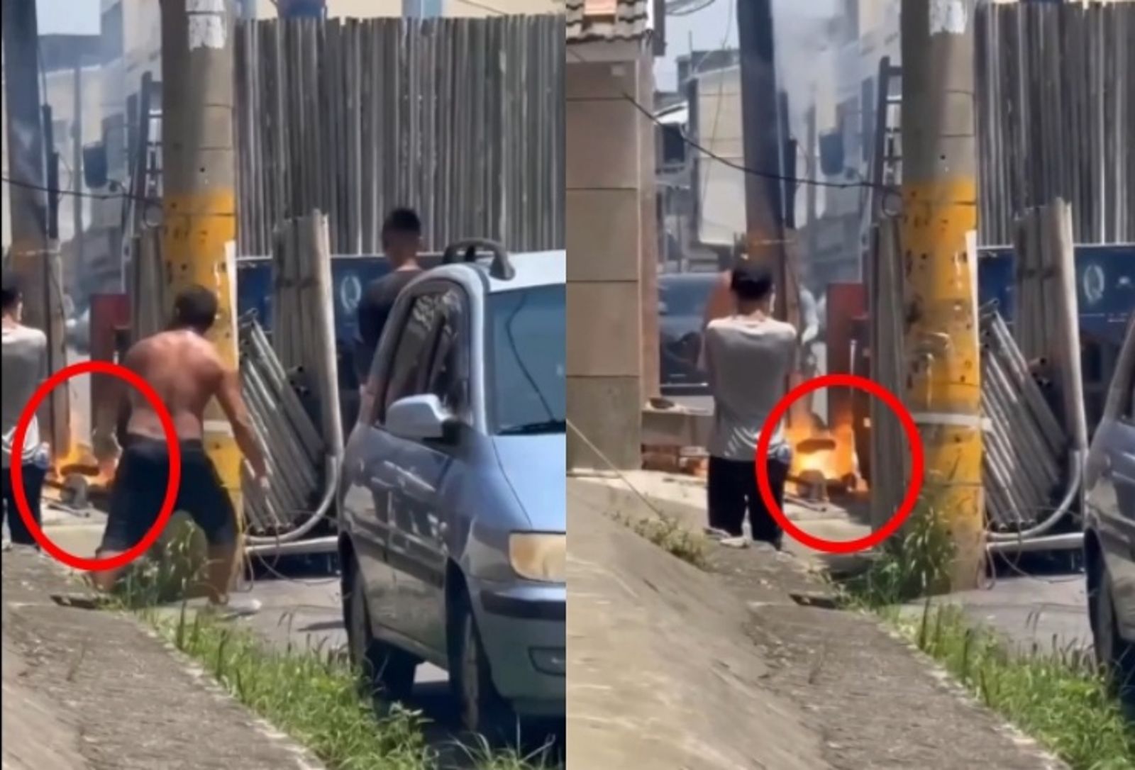 雲林工人誤觸高壓電,下半身瞬間燃燒驚悚畫面曝光。(翻攝畫面)發布時間:2025.08.08 16:49 臺北時間
