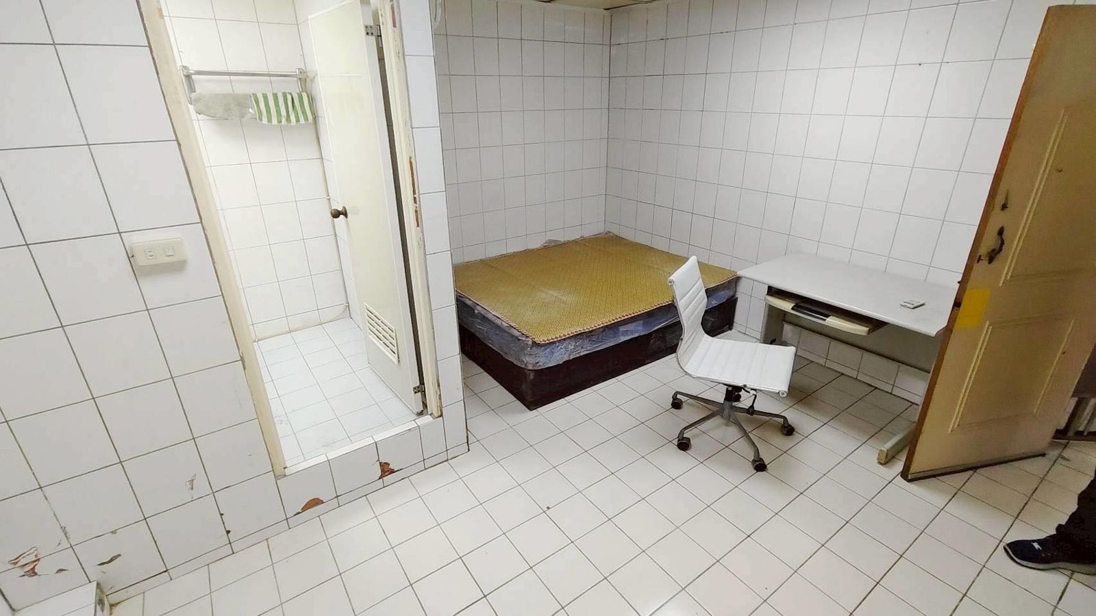 這間出租套房地點超好,緊鄰捷運松山站,走路大概6分鐘就到,租金還包水電,乍看之下超吸引人,然而裝潢極為簡陋,從釋出的照片可見整間屋子從頭到尾都是白色磁磚,只提供草蓆床、桌椅與冷氣等基本家具,簡陋的居住品質讓網友砲轟房東「良心在哪」。更有網友直覺裝潢視覺上與廁所空間無異,忍不住吐槽:「為什麼廁所裡又有廁所」。
