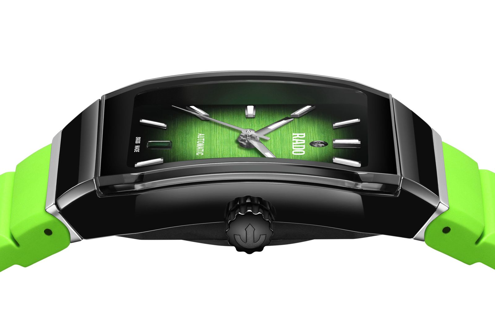 從早期單一的黑、白氧化鋯錶殼,到今日能精確控制色澤、表面質感與結構特性,陶瓷已從外觀選項進化為結合功能與美學的成熟技術。常用的氧化鋯可確保色澤穩定並維持高水準拋光;碳化矽與氮化矽則憑藉強度與耐熱性優勢,多配置於關鍵功能零件。混合材質方面,Rado Ceramos™(金屬陶瓷)在重量、韌性與光澤間取得平衡;Swatch Bioceramic 則由約三分之二陶瓷粉末與三分之一生質塑料(蓖麻籽基)混合,保留部分抗刮與親膚特性,同時提升耐衝擊與成形自由度,讓造型與色彩表現更靈活。然而,因塑料比例較高,其耐磨與長期光澤保持仍不及純高科技陶瓷,定位更偏向設計與生活化導向,而非追求極致耐用。