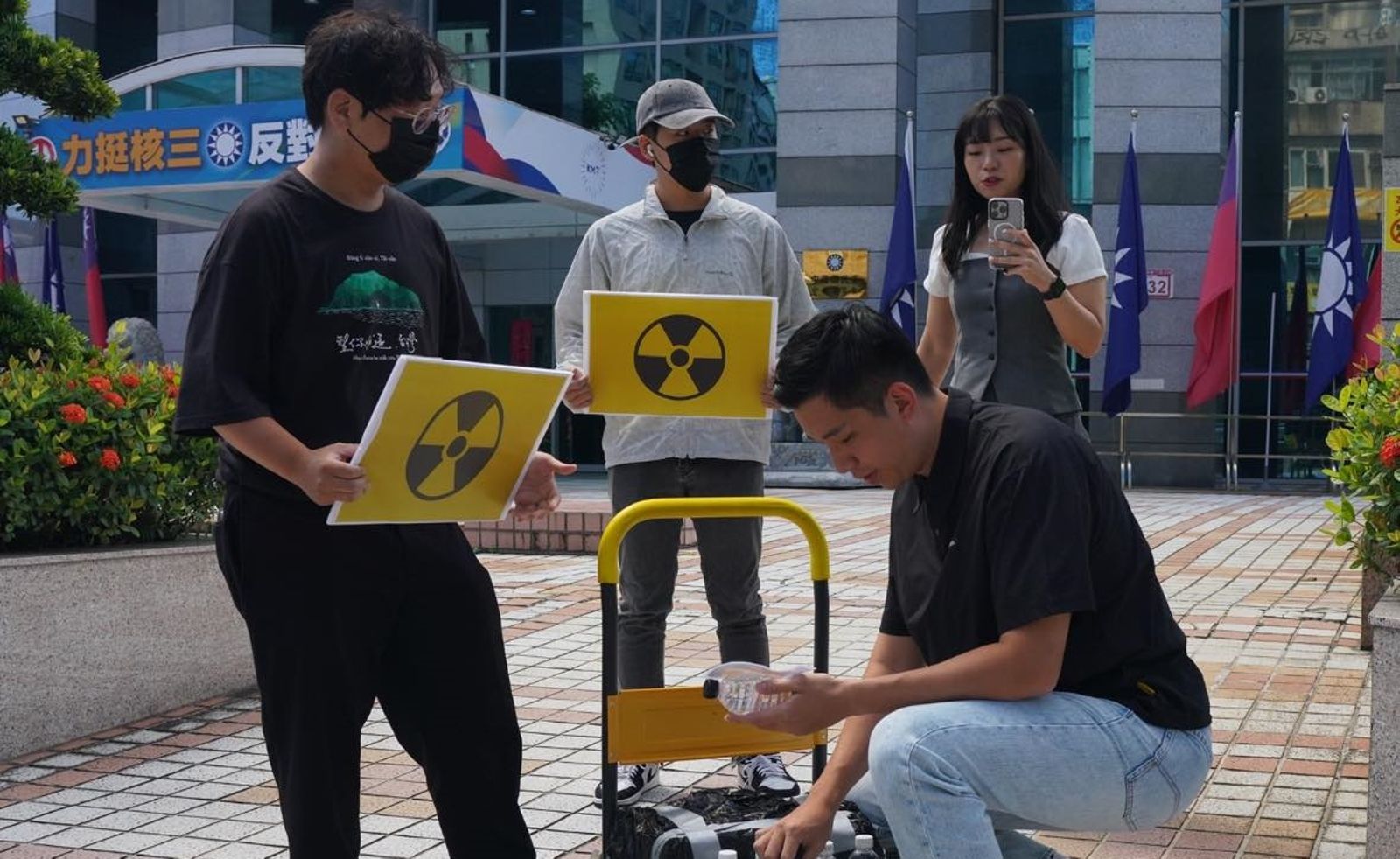 陳聖文今天推著許多核廢料儲存場的水送到國民黨中央黨部,卻遭到楊智伃嗆聲攔阻,接著她還拿起其中一罐水猛灌,她回嗆陳操作情緒來作秀,並譏諷陳只會跑來「擺拍」,希望陳未來有機會加入民進黨的初選行列,她也感謝提供「很好喝的水」。