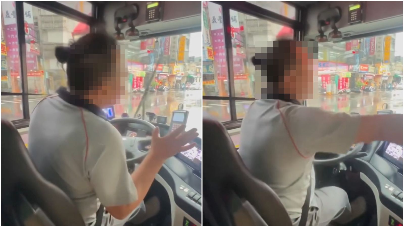畫面可見,1名公車司機疑不滿某校女學生招手問題,於駕駛座上怒批手總是手舉不夠高,不然就是不舉手,都要靠其他人舉手,「是你們問題,不是我的問題」「要投訴去投訴」。