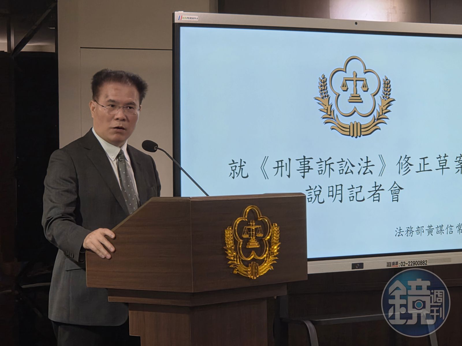 身兼法務部次長的發言人黃謀信說,現今犯罪型態多有共犯結構,甚至趨於集團性、組織性。例如,國人深惡痛絕之詐欺案件、虐童犯罪、兒少犯罪,戕害民主基石之貪瀆、賄選案件,乃至於威脅國家安全、經濟命脈之共諜案件、營業秘密犯罪,均存在勾串之風險及可能性。 黃謀信表示,現行羈押替代處分措施,僅能防止被告逃匿,均無從防止被告勾串滅證。若刪除此一羈押原因,則無法透過羈押以防免勾串,將使被告得在第一時間脫身,迅速串供證,偵查機關即難以有效鞏固事證、溯源斷根、澈查犯罪網絡,顯然背離國民法律感情,並衝擊社會治安,危及民眾權益。