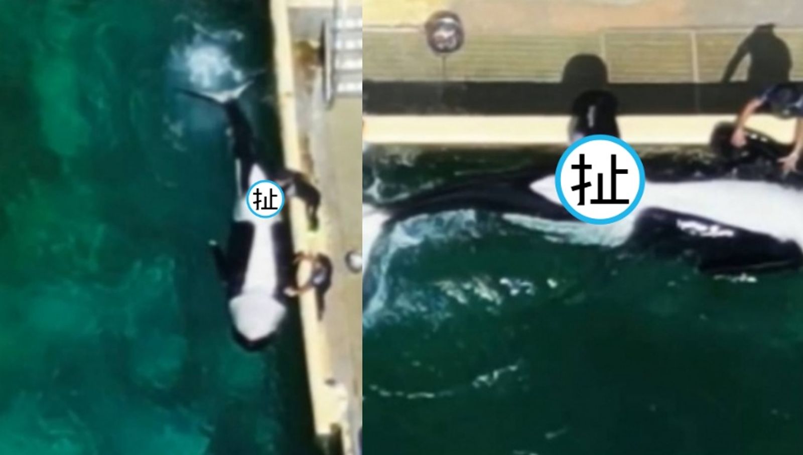 據動保團體TideBreakers本月(8月)12日公布的影片,畫面中11歲的雄性虎鯨凱喬(Keijo)翻身仰躺在水面,兩名訓練員分別抓住牠的鰭進行操作,而24歲的母親維琪(Wikie)則被隔在鄰近水池。