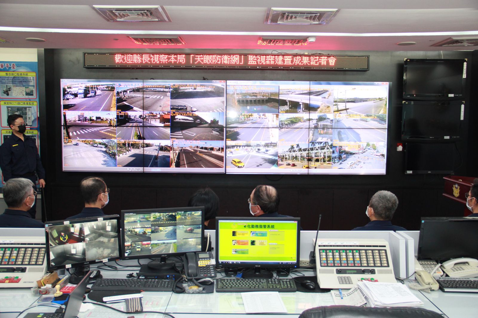 街巷間,監視器鏡頭如繁星般點綴天際,密布成一張無形卻明亮的大網。那是科技與人力相輔相成的眼睛,守護著城市的脈動與秩序。自縣長王惠美上任以來,縣府積極推動警政硬體升級,迄今已建置超過12,000支監視器鏡頭,逐步建構出密度居六都以外之冠的「天眼防衛網」智慧監控系統。日夜記錄著城市的律動,並在關鍵時刻發揮力量。