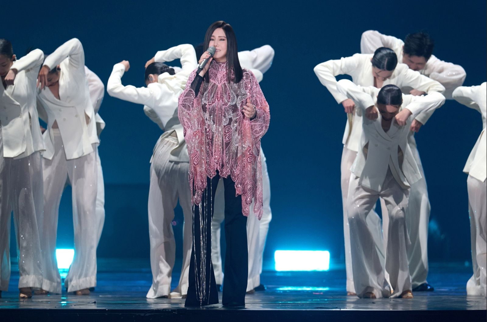 此次,北高23場演唱會雖然沒有邀請嘉賓,但台下卻是星光熠熠,除了周杰倫、昆凌夫妻倆低調坐在包廂,阮經天、戴佩妮、彭佳慧、周蕙、辛曉琪、許富凱、LuLu等藝人亦到場欣賞演出,此外,好友費玉清雖沒有來到現場,但是他以「蝴蝶花禮」全程陪伴,為了確保鮮花保持在最佳狀態,這隻蝴蝶每隔3到5天便會「換裝」一次,每次都以嶄新的色彩和花材亮相,從首場到壓軸全程相伴,今日蝴蝶從前兩套的色彩變換到第3套藍紫色系登場;藍色深邃如海、紫色淡雅如詩,兩種色彩交織生輝,恰如兩人的友情跨越歲月並肩綻放。「蝴蝶」一次次的蛻變,不只是視覺的驚喜,更是對江蕙獨ㄧ無二的祝福。