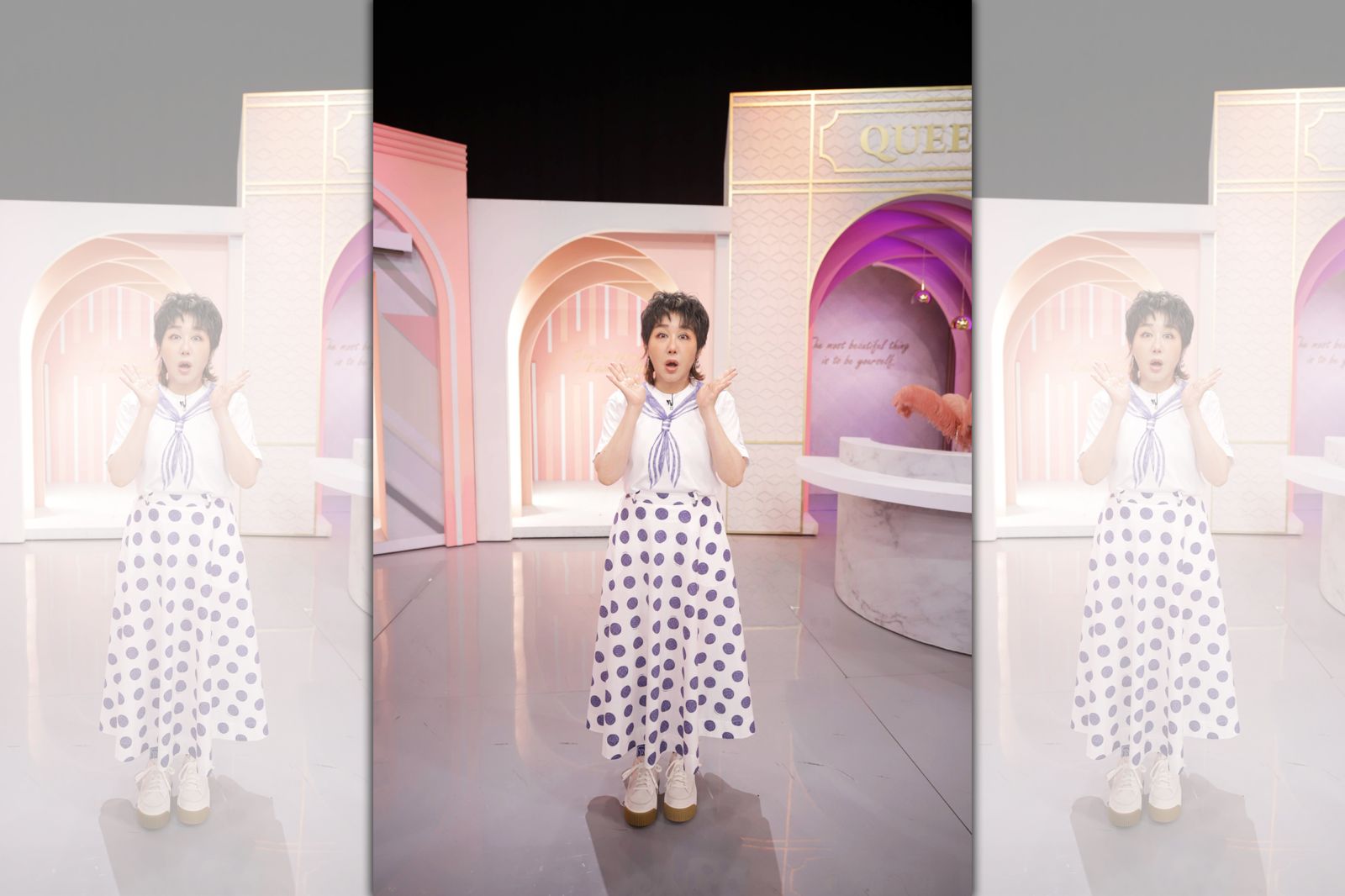 藍心湄回顧起當時狀況,導播看到後方有人走來走去,喊卡了三、四次,工作人員還大喊「後面的不要再走來走去了!」但中場休息時,眾人查看,才發現後台根本沒人,回想起來,還是讓藍心湄感到毛骨悚然。