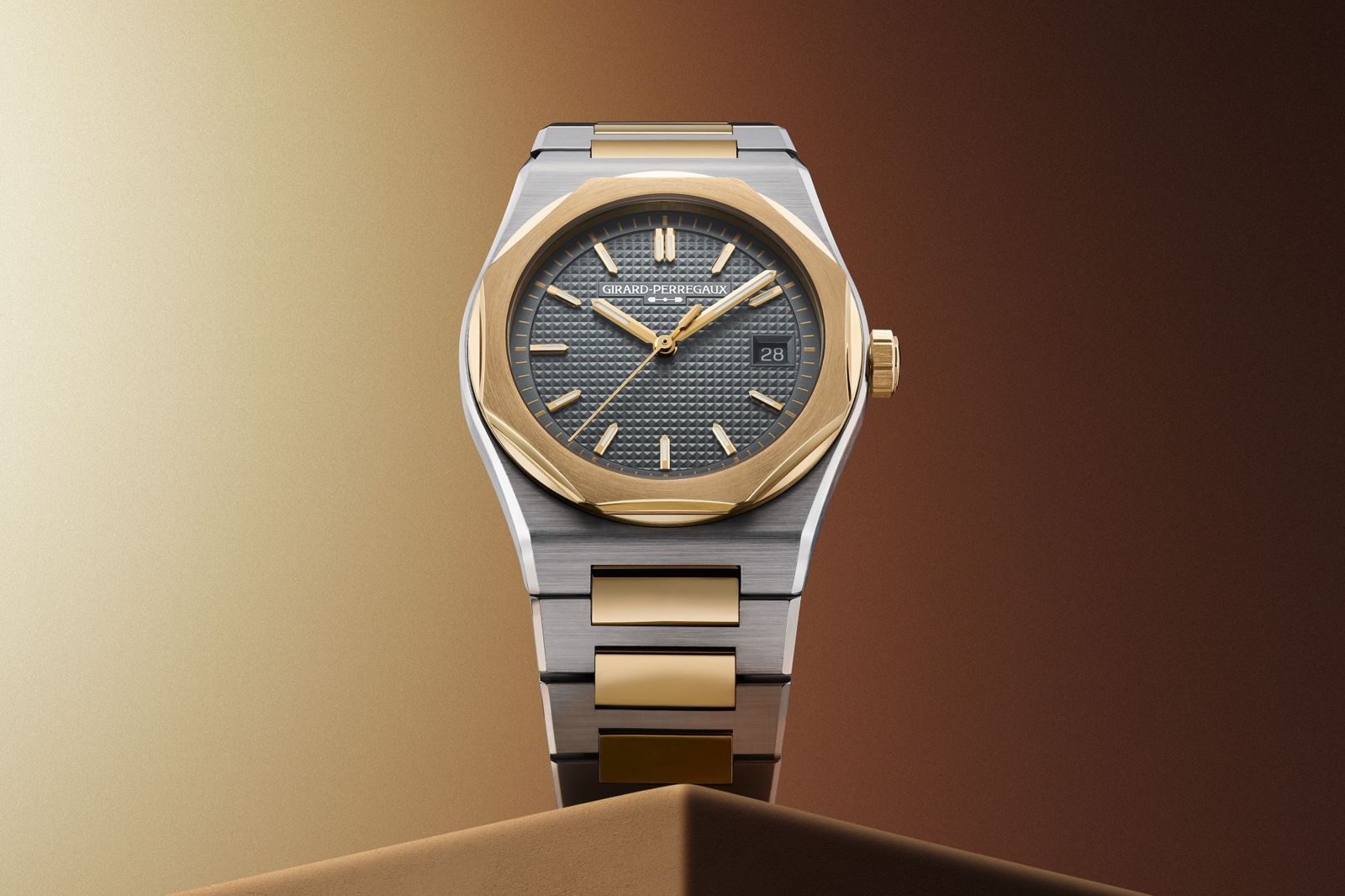 GP在 1975年發表的 Laureato,是當時少數能將奢華運動錶與石英技術結合的作品之一。那是整個鐘錶產業風雨飄搖的年代,機械錶面臨石英革命的衝擊,瑞士錶壇陷入動搖,但GP選擇直接擁抱科技,並與積體電路廠Thomson CSF及Motorola聯手合作,開發了GP 350石英機芯,其32,768Hz的振頻亦成為日後的石英錶振頻基準。而初代Laureato亦選擇搭載GP 350機芯,彰顯其工藝與機能並重的務實取向。
