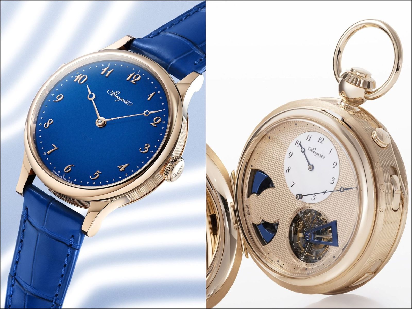 錶盤以法國藍大明火琺瑯燒製,琺瑯塗覆於白金底材之上,經多次燒製以呈現深邃的質感,賦予清晰透亮的視覺效果,與簡潔的18K寶璣金雙寶璣指針相得益彰。同樣以18K寶璣金打造的立體時標、和6點鐘位置的隱密簽名保留了寶璣經典元素,而法國藍大明火琺瑯則營造出更為現代的氛圍。