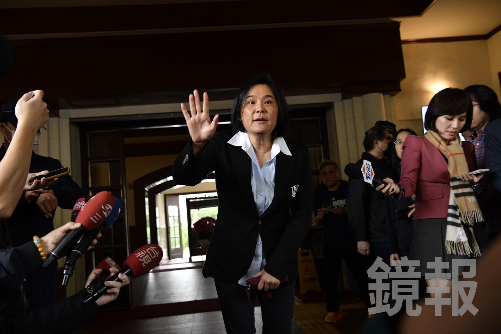 陳玉珍一到場時,要媒體分開成兩側,讓她可以「直接面對」助理們,正面面對訴求,才開始受訪。