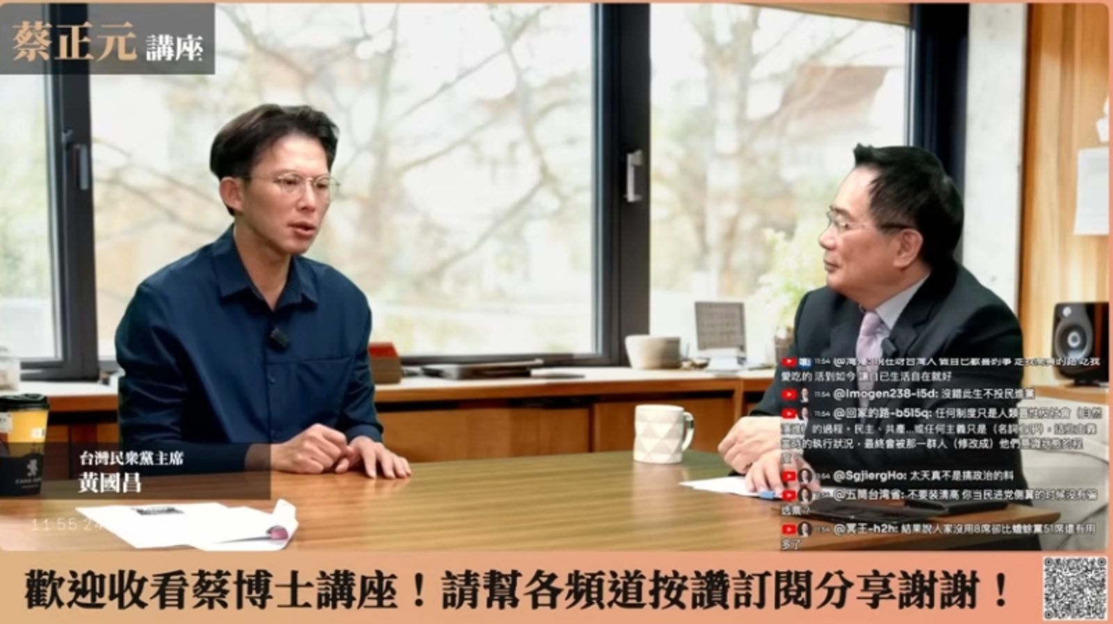過去曾對蔡正元發動罷免的黃國昌,近日兩人上演大和解,黃國昌15日上蔡正元的直播節目接受專訪,蔡在節目尾聲中數度追問黃「你有沒有中國認同?」黃坦言「我沒有什麼太大的中國認同」,不過話鋒一轉又稱「溯源到很久以前的事情,那是客觀的歷史事實」。