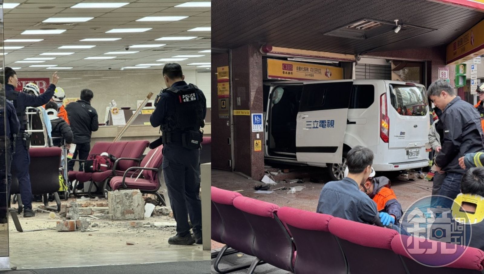 警方指出,肇事車輛為三立電視台所屬採訪車,當時由67歲林姓駕駛駕駛,行經南京東路二段準備左轉時,車輛突然失控,直接衝入路口旁的彰化銀行吉林分行。