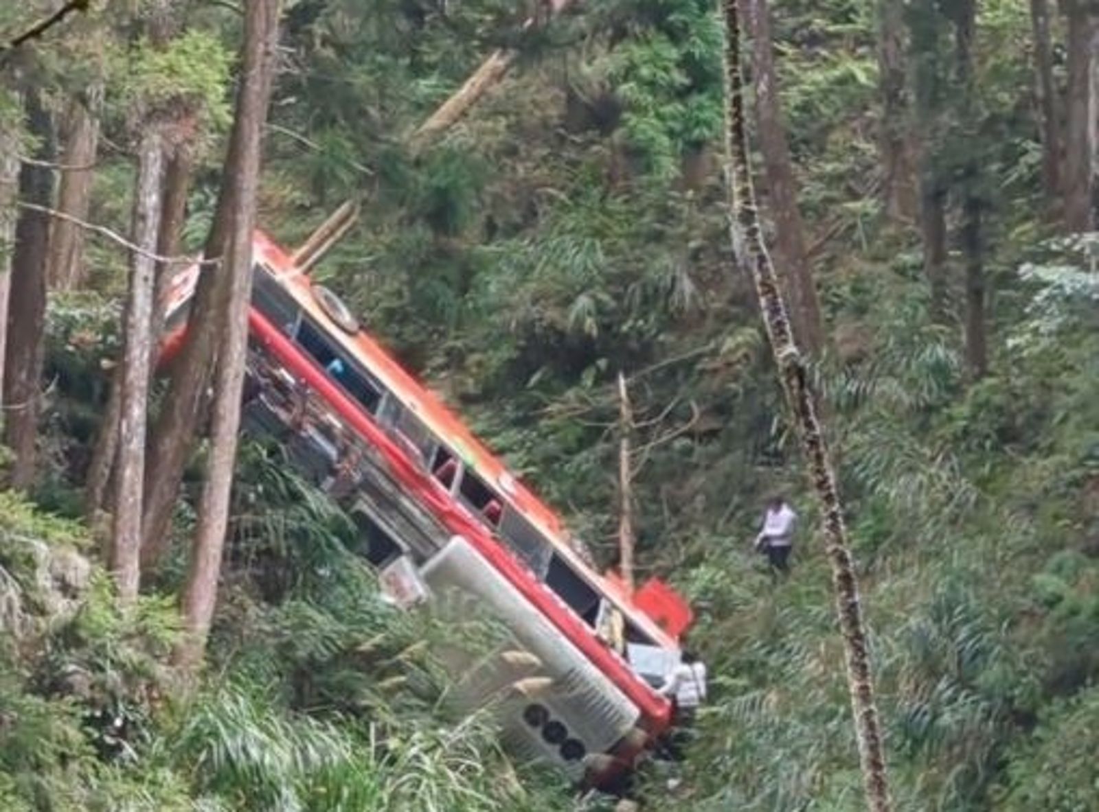 南投竹山鎮杉林溪自然園區花卉中心,稍早驚傳一台遊覽車在園區內墜谷意外。(翻攝自Threads@peng840406)發布時間:2026.03.09 13:33 臺北時間