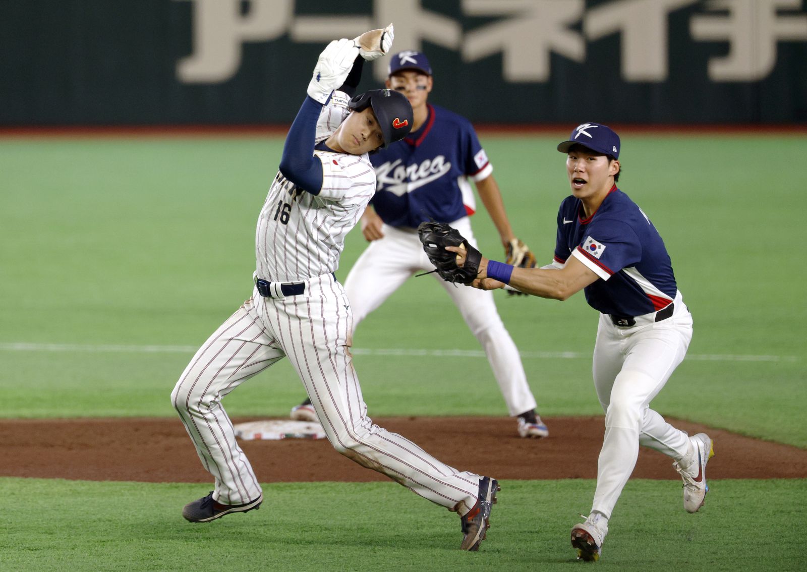 不過今天面對澳洲的關鍵戰役,金慧成確定不在先發名單之內,南韓總教練在和澳洲的賽前透露,金慧成是在昨天和台灣的延長賽盜壘中,滑行過程左手手指撞到壘包,休息過後仍然感到不舒服,所以今天無法列入先發名單,改由申珉宰上場。