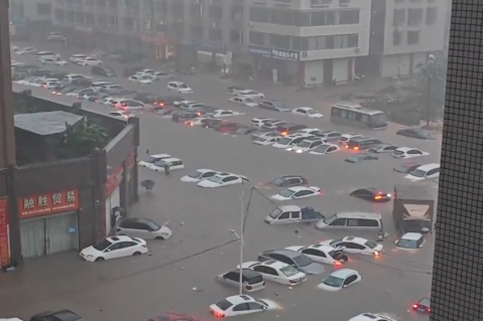 街道上的積水一度深過成人膝蓋,大量汽車在路面上「隨波逐流」,甚至出現積水倒灌進社區電梯與住家的險象。為了維持生活,有居民被迫划起小船出門買菜,武警官兵也緊急動員,利用皮划艇穿梭在街道間救援受困群眾。