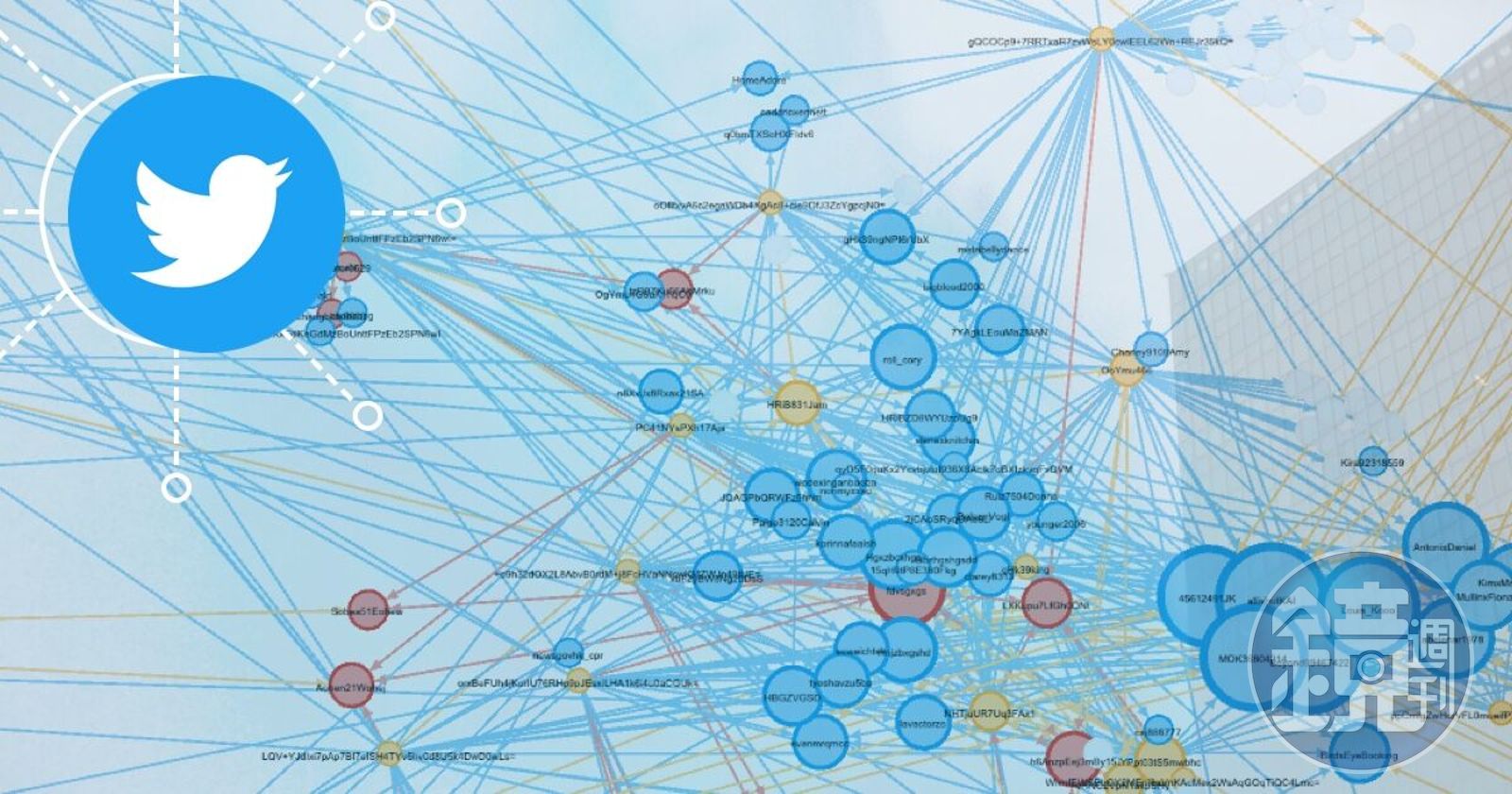 還存在的帳號,跟「反送中」帳號的關係就比較單純,幾乎只跟單個反送中帳號有連結。